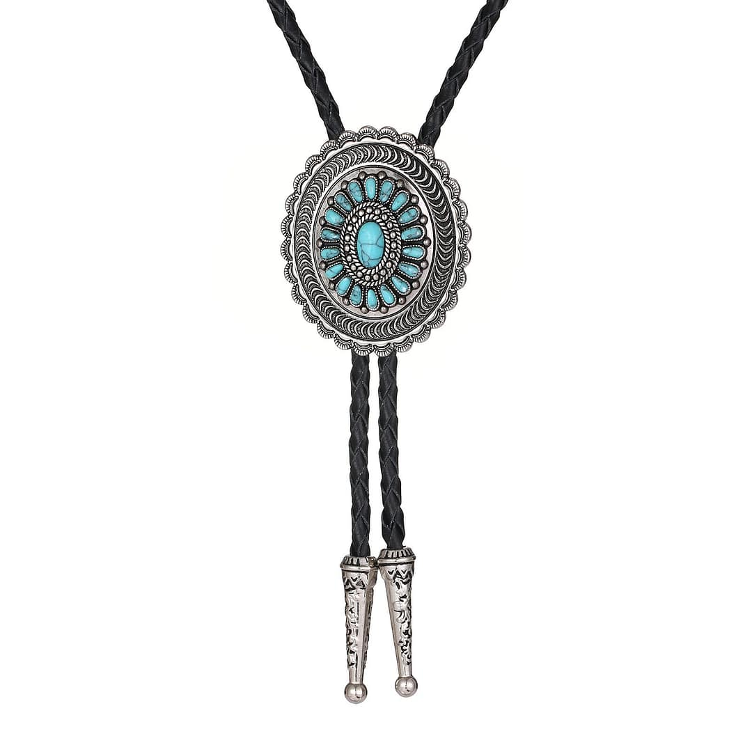 American Indian Western Style Turquoise Carved Bolo Tie