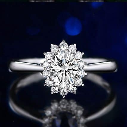 Italian Silver Engagement Ring Classic full diamond zircon egg oval sapphire ring for women