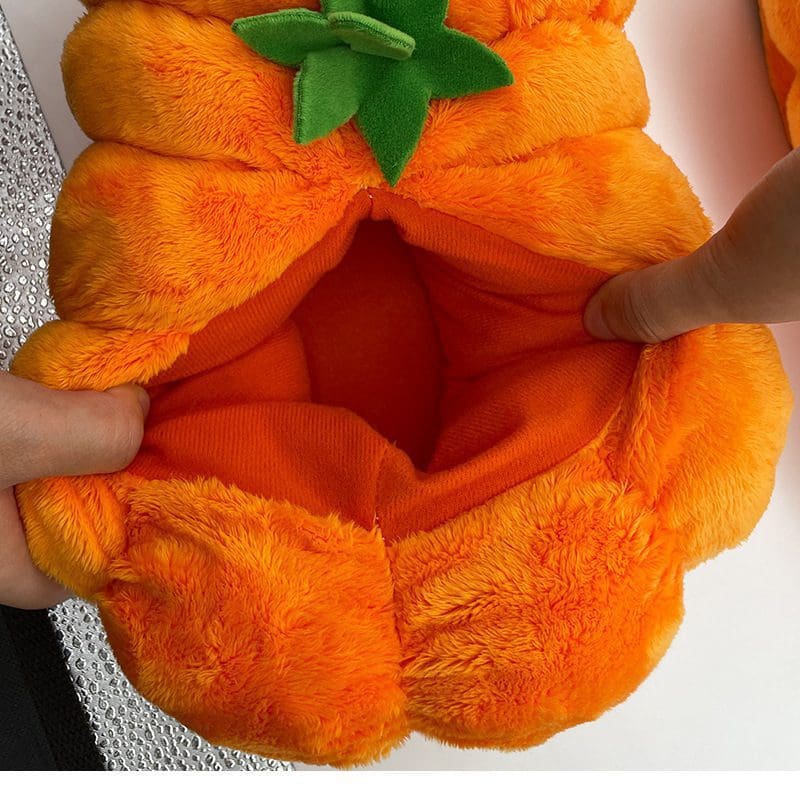 Creative Handmade Women’s Home Bedroom Halloween Pumpkin Plush Slippers