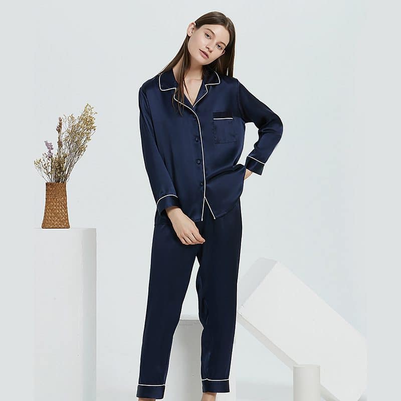 Handmade Couple’s Silk Pajamas Long-sleeve Suit Silk Homewear