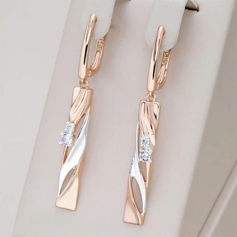 Luxury Long Color Separation Pendant Commuter’s All-matching 585 Rose Gold Simulation Earrings