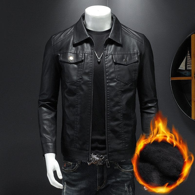 Mens Fashion Casual Solid Color Slim Biker Jacket