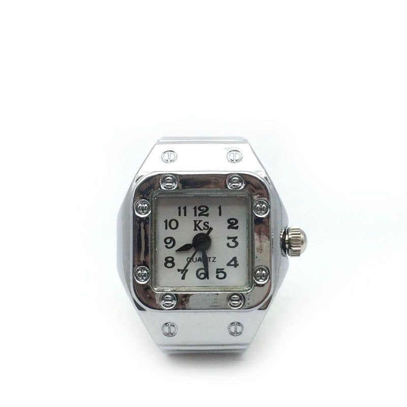 Mini Fashion Alloy Silver Shell Finger Watch Size Number Women Couple Ring Watch
