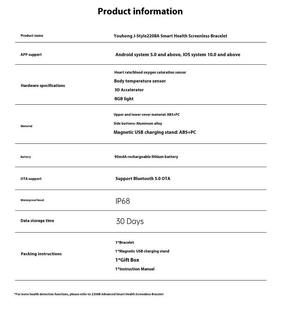 1 * Bracelet 1 * Magnetic USB charging dock 1 * Gift box 1 * User manual