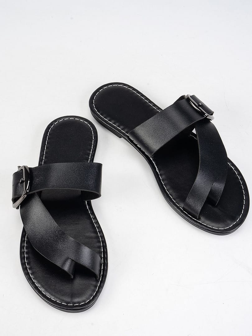 Summer Buckle Toe Clip Sandals Fashion Flat Beach Shoes Casual Comfortable Slides Slippers