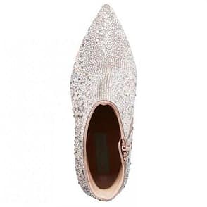 Product information: Pattern: solid color Lining material: fabric Color: rhinestone pink Length of socks: beyond the knee Heel shape: short stout heel Size: 35, 36, 37, 38, 39, 40, 41, 42, 43 Sole material: rubber Popular elements: rhinestones Toe bracket shape: Tip Shoe Upper material: Suede Wearing method: side zipper Applicable Gender: Female Style: Simple…